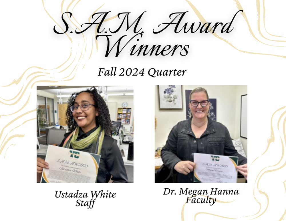 The purpose of the S.A.M. Recognition Awards program is to recognize one staff and one faculty each quarter.